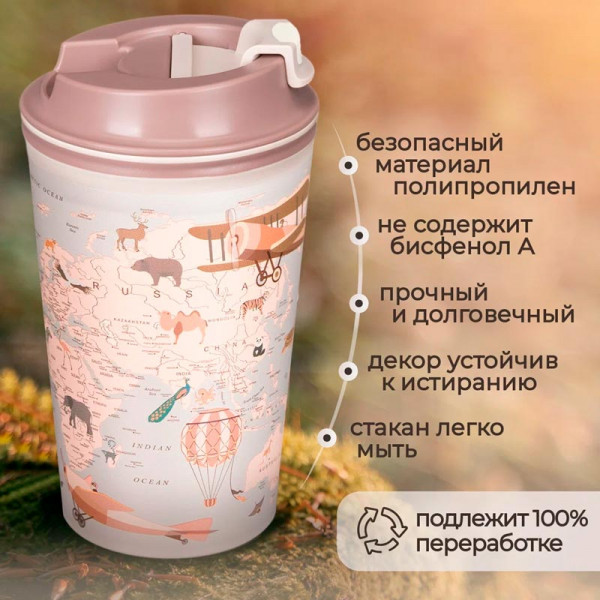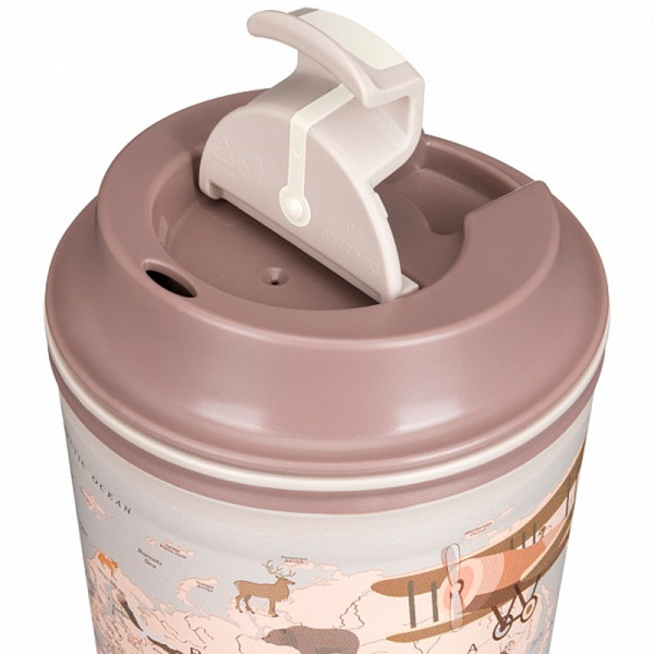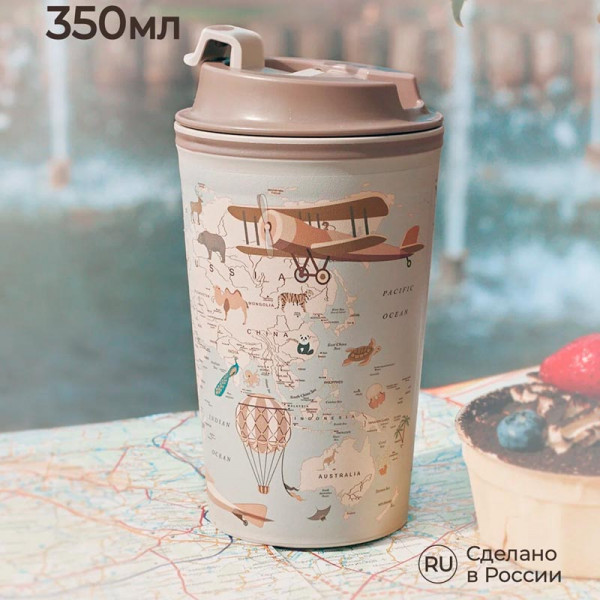 Термостакан с клапаном и декором "Карта" 350 мл (Светло-бежевый)