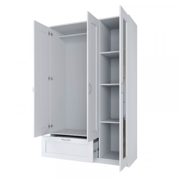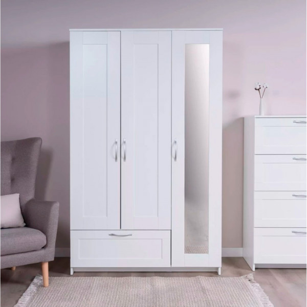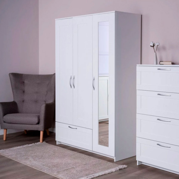 Шкаф 3-х дверный с зеркалом и ящиком "Сириус" белый