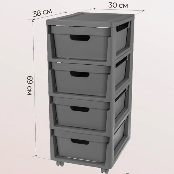 Комод на колёсах "Luxe" 4 ящика (Серый)