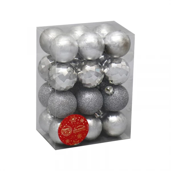 Набор шаров "Диско ассорти" 24 шт, d-4 см (Серебристый)