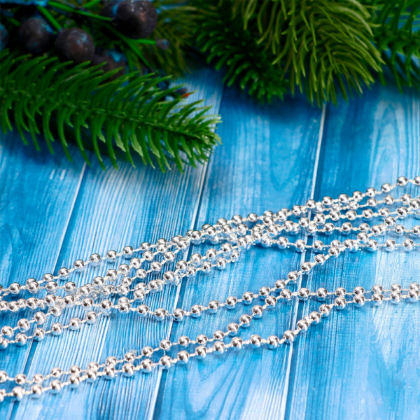 Бусы на ёлку 270 см ± 2 см, 4 мм (Серебристый)