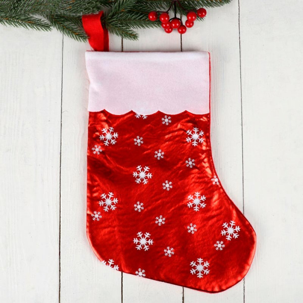 Носок для подарков "Мерцание" 19х38 см (Бело-красный)