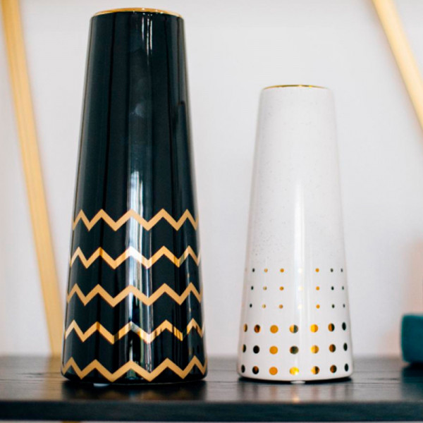Декоративная ваза "Арт Деко" 10х25 см (чёрный с золотом)